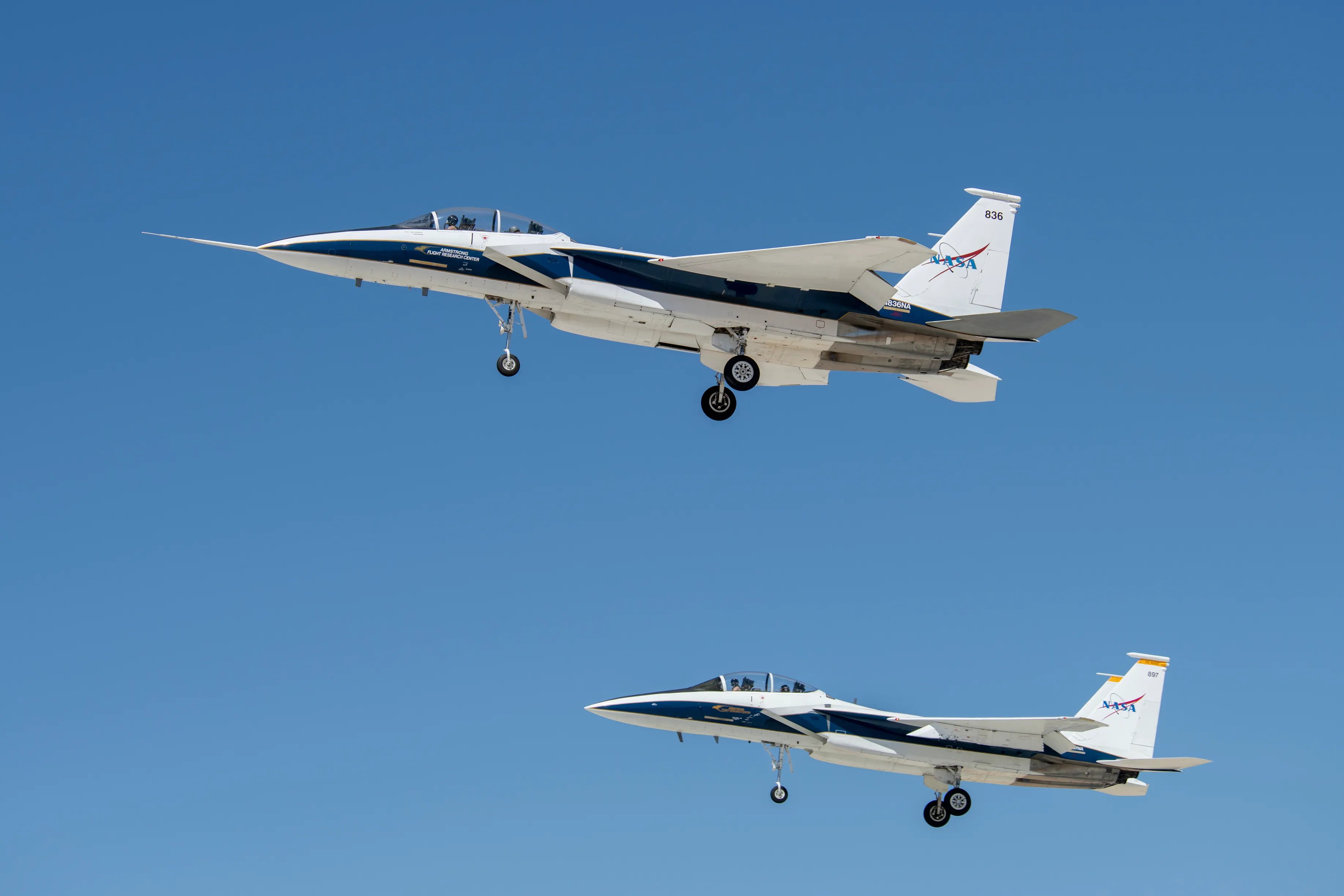Entre-temps, les chercheurs de la NASA continuent d'utiliser des Eagles plus anciens, notamment le numéro de queue 836 de la NASA, un F-15B datant de 1974, une variante du jet abandonnée depuis longtemps par l'Air Force. Ce jet particulier a été obtenu par la NASA en 1993 auprès de la Garde nationale aérienne d'Hawaï.