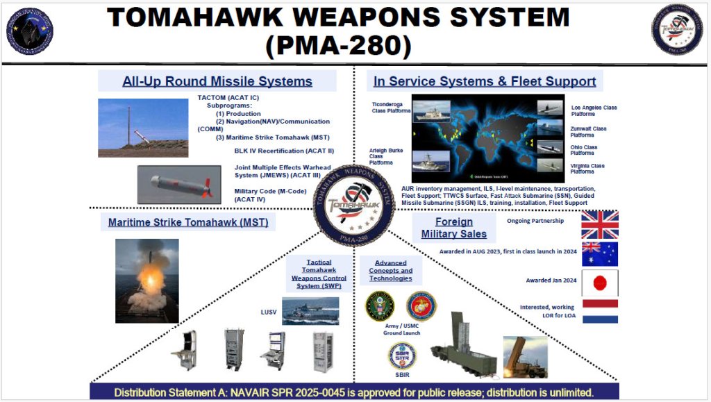 Un ensemble de diapositives d’information non classifiées publiées l’année dernière par le Naval Air Systems Command (NAVAIR) donnent une crédibilité supplémentaire au fait que le Tomahawk de couleur noire est un MST. Une diapositive comprend une mention du MST ainsi qu’une image à très basse résolution montrant un missile de couleur sombre.