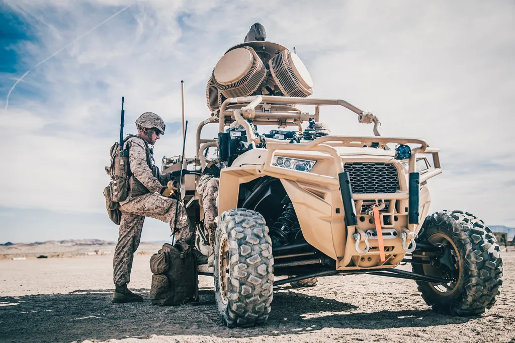 De son côté, le Corps des Marines a déjà déployé des systèmes de contre-drones montés sur des véhicules tout-terrain Polaris MRZR 4×4, qu'il appelle Light Marine Air Defence Integrated Systems (LMADIS). Un système LMADIS complet se compose d'un MRZR équipé de petits radars AESA, de caméras électro-optiques et d'une capacité de détection RF passive, associé à un autre véhicule transportant un brouilleur de guerre électronique. Les Marines s'entraînent également à l'utilisation de missiles sol-air Stinger à recherche de chaleur, également connus sous le nom de systèmes de défense aérienne portables (MANPADS), en collaboration avec LMADIS. Une première version de LMADIS, attachée au pont du Guêpe navire d'assaut amphibie de classe USS Boxeura été utilisé pour abattre un drone iranien alors que le navire transitait par le détroit d'Ormuz en 2019.