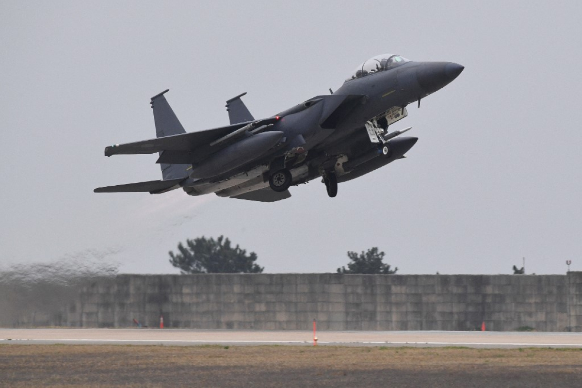 Légende: Un chasseur F-15K de l’armée sud-coréenne, en 2017, à Gunsan (illustration) (AFP / JUNG YEON-JE)