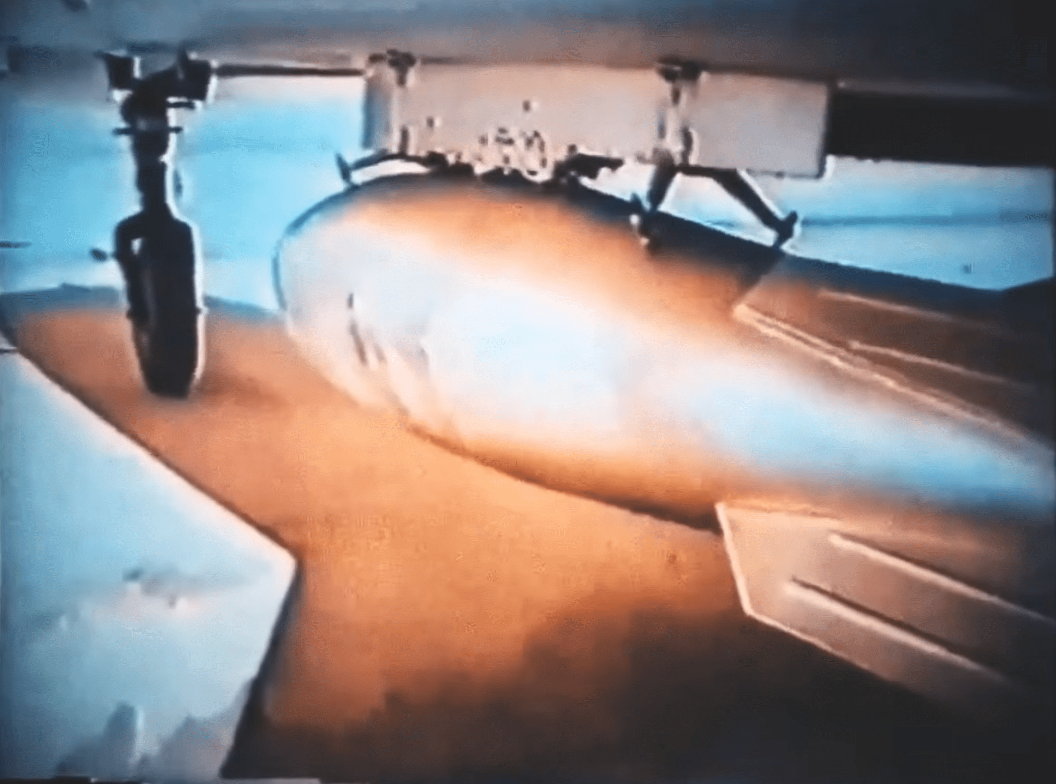 À ce stade, il convient de noter qu’il est possible que la vidéo montre non pas le 244N, mais un IAB-500, une soi-disant « bombe d’imitation » qui reproduisait la forme, les dimensions, le poids et les caractéristiques de vol du dispositif nucléaire. Rempli d’un mélange de pétrole liquide et de phosphore blanc, il a également produit une grosse boule de feu qui s’est ensuite transformée en champignon atomique.